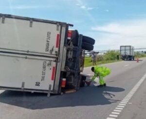 Volcó un camión con carne en la Ruta 9
